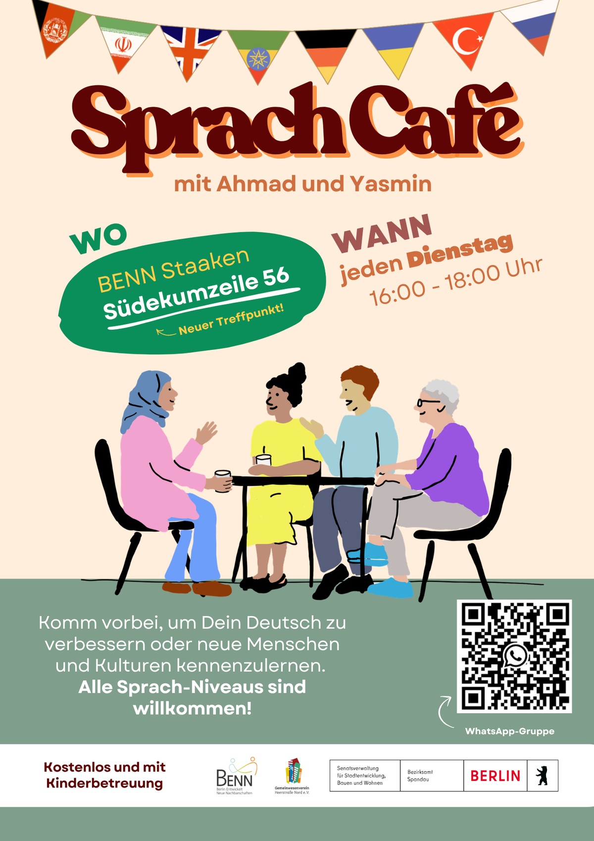Organisation: https://benn-staaken.de/2025/02/10/sprachcafe/