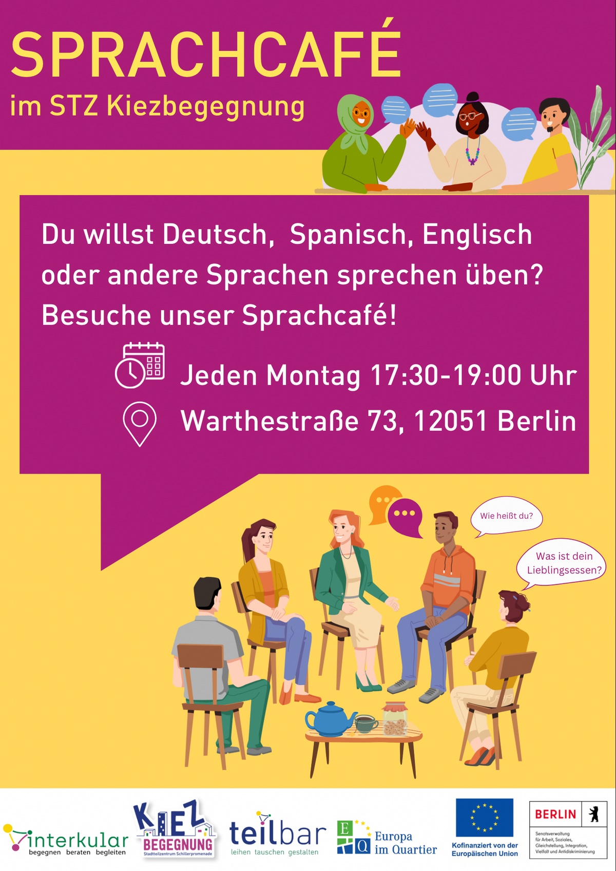 Our Sprachcafe in Stadtteilzentrum Kiezbegegnung offers a german group and Spanish group. We want to practice our language skills together in a relaxed atmosphere. You are very welcome to join us!